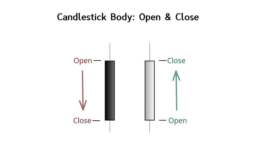 A parte grossa da vela é o corpo. Ele mostra a distância entre onde o preço abriu e onde fechou durante aquele período.