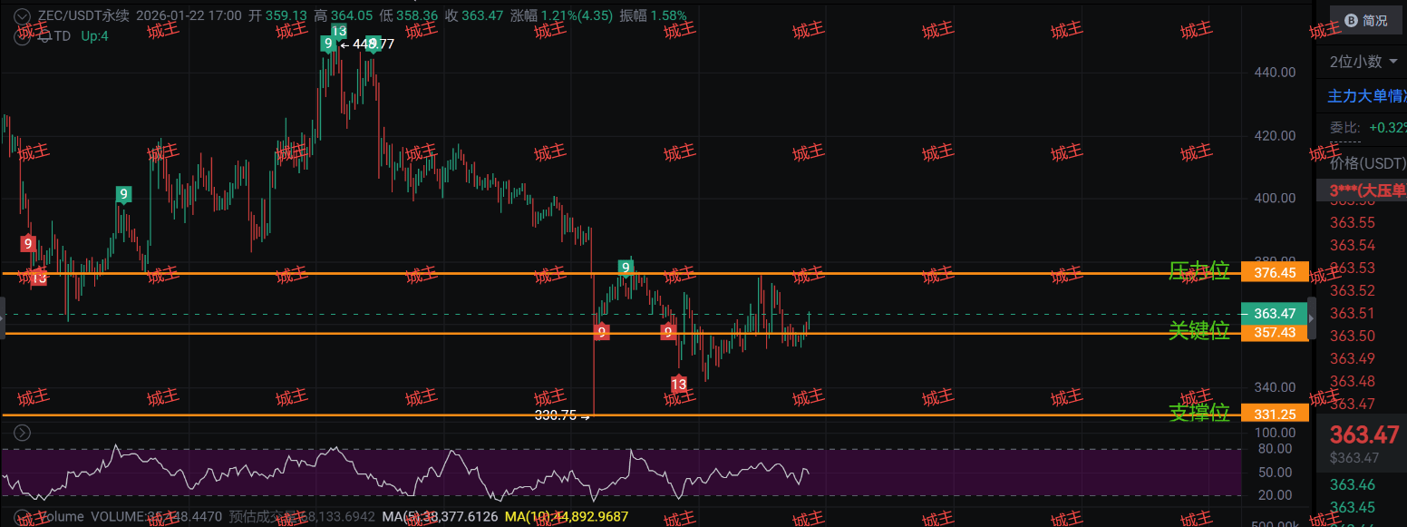 Gemini联创向Shielded Labs捐赠3221枚ZEC,价值约120万美元。这笔看似利好的资金注入,在币圈却掀起了"买预期卖事实"的经典戏码——当市场都在欢呼"大利好"时,主力资金早已借势出货。就像去年比特币减半前夜,多少人冲进去接盘却迎来暴跌?这次ZEC的370关口,正是主力精心设计的"情绪陷阱"。