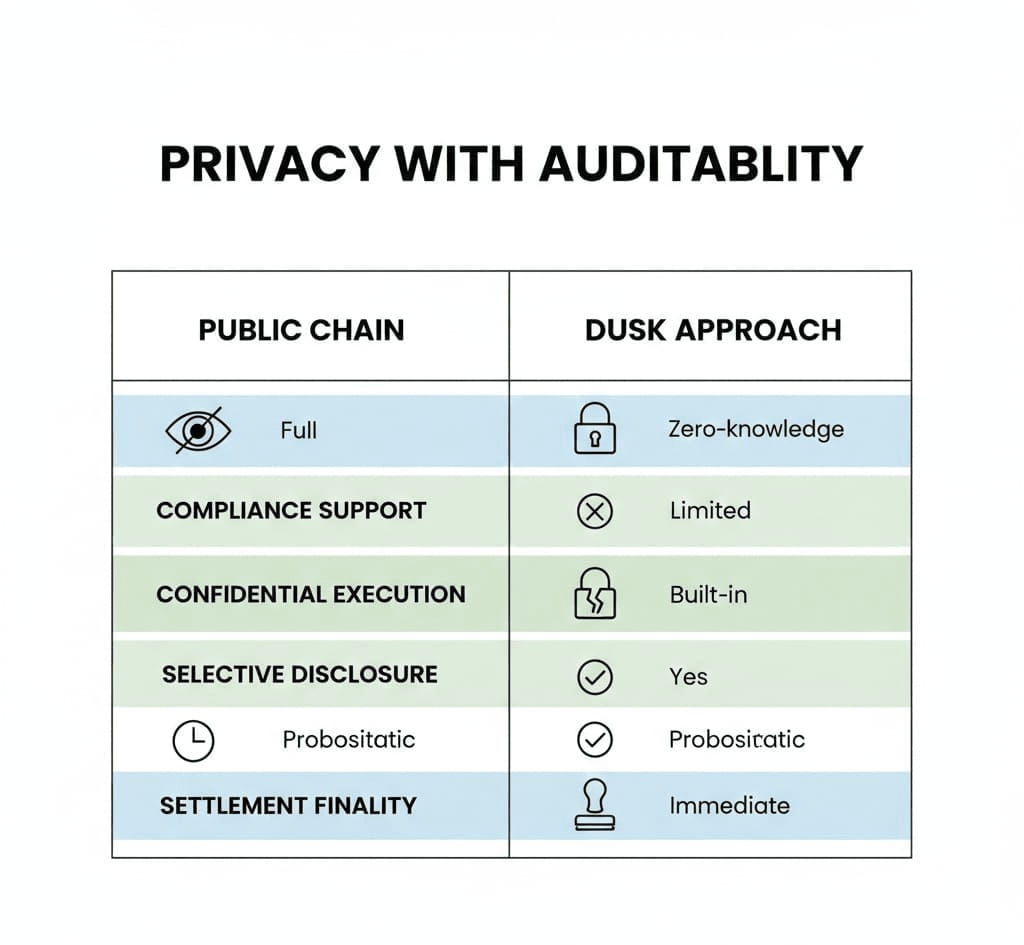 Esse equilíbrio não é fácil. Na verdade, é uma das coisas mais difíceis de alcançar no design de blockchain, porque a privacidade e a auditabilidade geralmente lutam entre si. A privacidade quer esconder. A auditabilidade quer revelar. A abordagem do Dusk é usar criptografia para permitir auditabilidade sem exposição pública. Ela move o modelo de confiança de "todo mundo vê tudo" para "todo mundo pode verificar a correção".