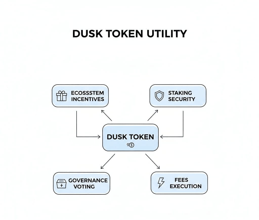 O token DUSK existe para apoiar o funcionamento da rede. Ele faz parte do que garante a segurança da cadeia, paga pelo uso da rede e alinha os incentivos para validadores e participantes. Em um ambiente de Proof-of-Stake, um token não é apenas uma moeda. Ele se torna o motor de segurança. Ele cria gravidade econômica. Ele torna caro atacar a cadeia e recompensador apoiá-la.