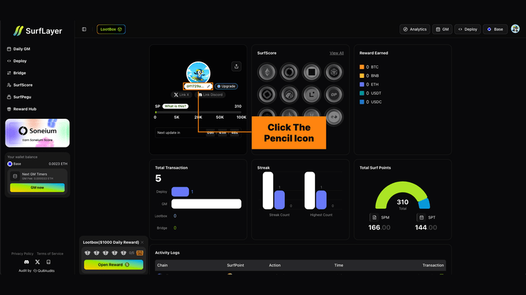 Usuários que possuem um SurfScore em qualquer cadeia suportada podem atualizar seu nome de usuário no SurfLayer.