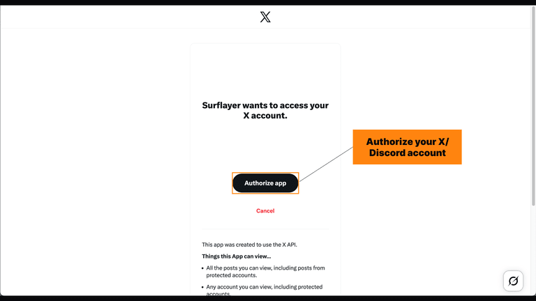 Autorize sua conta X ou Discord
