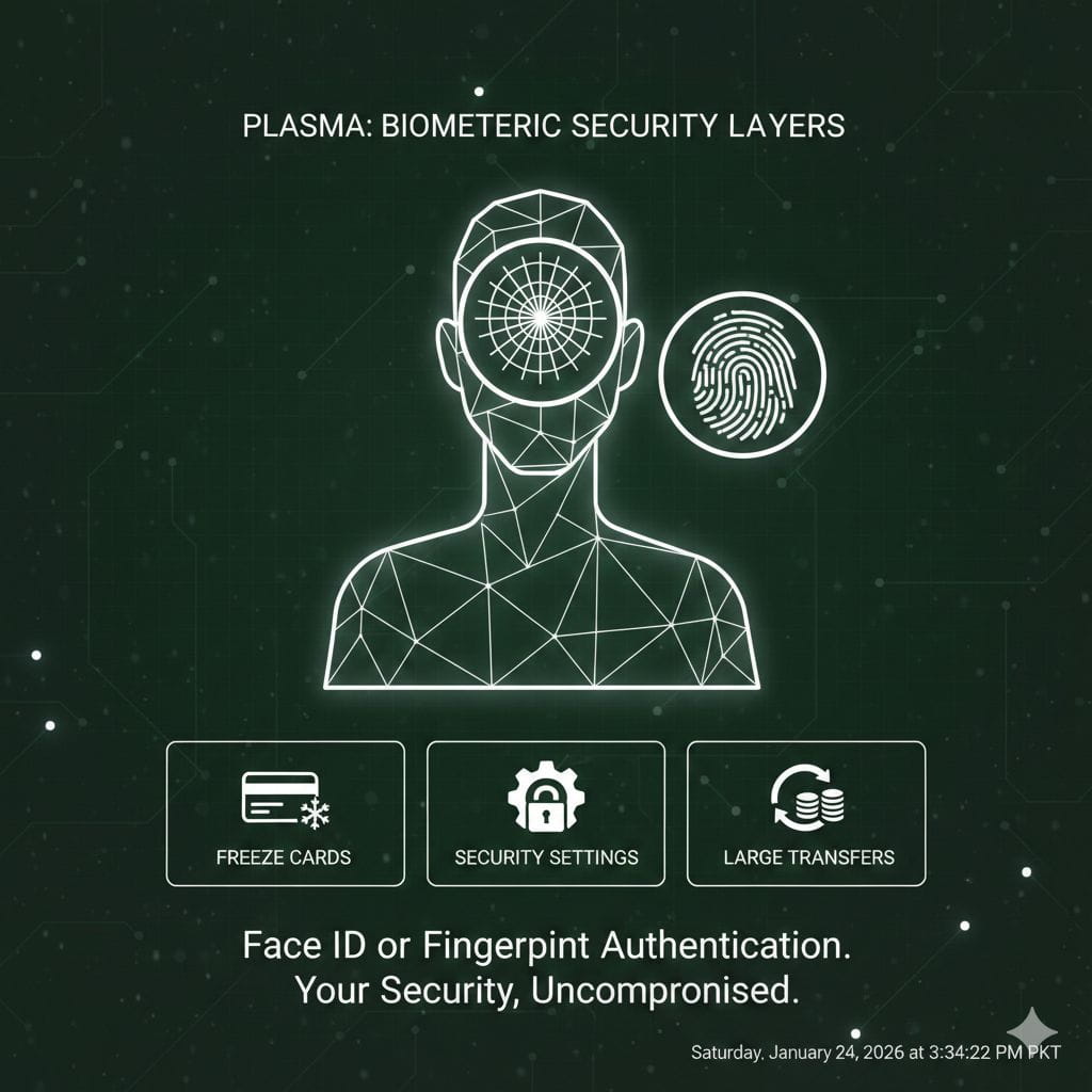 Vamos ser realistas sobre autenticação. Plasma One exige verificação biométrica para ações sensíveis—congelar cartões, alterar configurações de segurança, autorizar grandes transferências. A autenticação por Face ID ou impressão digital significa que alguém não pode acessar seus controles de segurança mesmo que roube seu telefone.