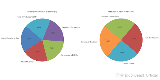 None of these decisions are without trade-offs. Privacy-preserving computation and selective disclosure mechanisms tend to introduce additional complexity and, often, latency. Settlement finality may be slower than on chains optimized purely for throughput. Cross-chain interactions and asset migrations rely on trust assumptions that cannot be eliminated, only managed. Bridges, custody models, and upgrade paths introduce governance questions that are uncomfortable but unavoidable. From an institutional standpoint, these are not disqualifying flaws; they are factors that must be priced into risk assessments and operational planning. Pretending they do not exist is far more dangerous than acknowledging them openly.