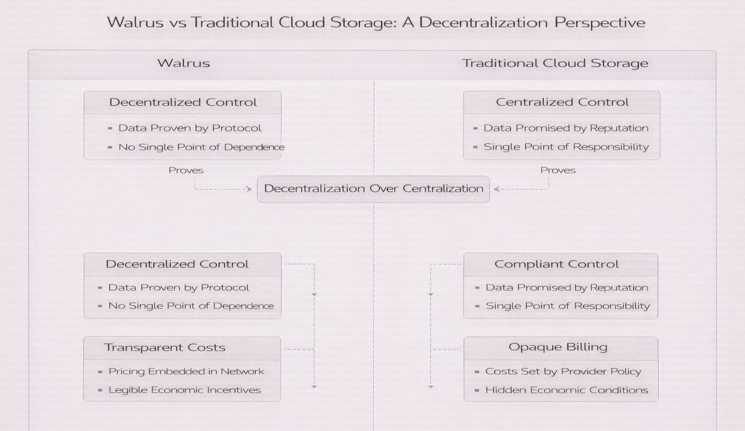 Walrus is not competing with cloud storage on convenience alone. It is redefining what storage means when trust cannot be centralized and failure cannot be negotiated. From a decentralization perspective, the difference is not performance or cost. It is whether data survives because someone is responsible or because no one needs to be.