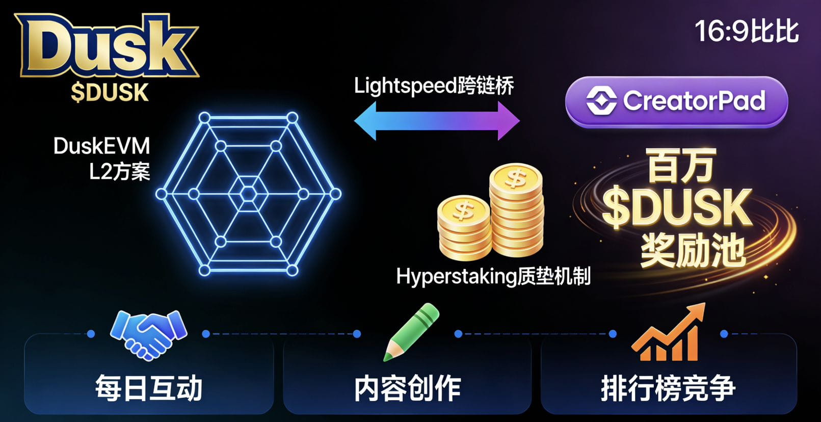 更具吸引力的是,Dusk Foundation与币安合作的CreatorPad活动,堪称一次直接的生态红利释放。数百万$DUSK代币券的奖励池,正等待社区成员通过每日互动、内容创作和排行榜竞争来获取。这无异于项目方将机构级基础设施的早期红利,以极低门槛空投给最广泛的交易平台社区。对于那些寻求超越 meme 币炒作的投资者来说,Dusk代表着一个更坚实的叙事:它并非在建造空中楼阁,而是在铺设连接万亿传统金融与链上新世界的铁轨。