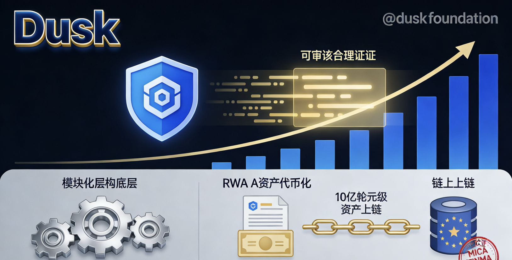 Dusk的独特之处在于,它的零知识证明体系并非简单的数据隐藏工具。其深层目标,是服务于真实世界资产(RWA)的大规模、合规化上链。想象一下,机构如何在链上处理价值数万亿的证券或债券,同时满足欧盟MiCA、FINMA等全球监管机构的苛刻要求?Dusk提供的,正是一件“隐身衣”和一副“合规眼镜”的结合体。它允许敏感的商业信息被加密保护,同时又能为必要的审计生成无可辩驳的合规证明。这种“双buff”加持,使其成为传统金融巨头迈向数字世界时,一个技术上可行且监管上安全的桥梁。