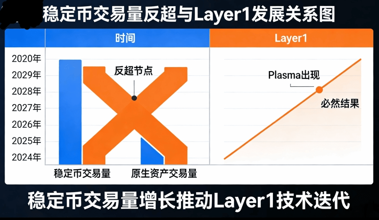 É sob essa contradição que Layer1, como o Plasma, com o objetivo central de liquidação em stablecoins, se torna inevitável. Não é uma nova narrativa que surge do nada, mas uma resposta à falência das suposições do sistema existente. Quando o volume de transações das stablecoins ultrapassa os ativos nativos se tornando a norma, a infraestrutura subjacente deve redefinir suas prioridades. Continuar a tratar a demanda de liquidação como uma função secundária apenas ampliará o atrito do sistema.