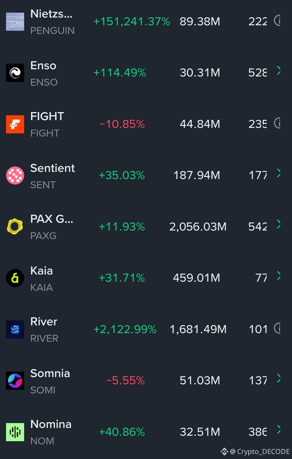 Trending tokens