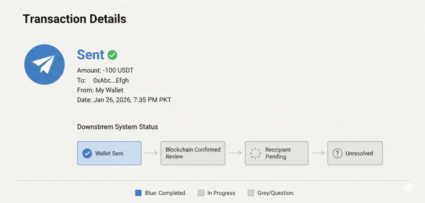O remetente se desengaja cedo. O receptor espera mais do que gostaria. As operações começam a tratar “enviado” como provisório, mesmo quando não deveria ser. Capturas de tela circulam. Exploradores são verificados. O pagamento deixa de ser uma unidade de valor e se torna uma incerteza compartilhada.