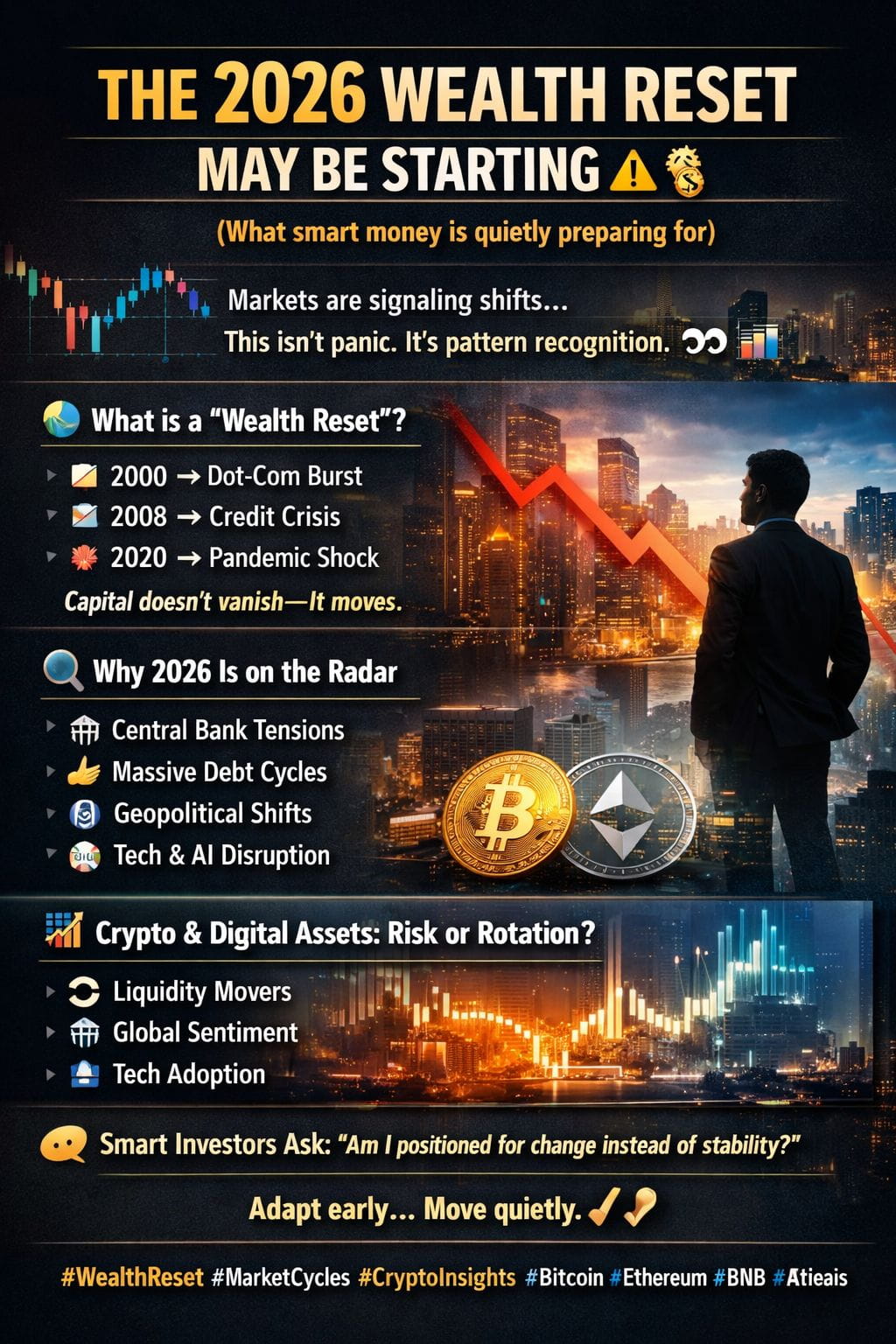 Um reset de riqueza não significa que todos perdem dinheiro. Historicamente, isso significa que a riqueza se move — de estratégias ultrapassadas para aquelas adaptativas, de posições pesadas em alavancagem para ativos resilientes.