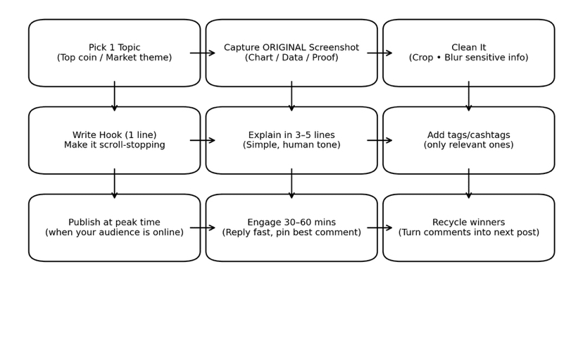 Deixe-me compartilhar a abordagem exata que uso — além de como melhorar com o CreatorPad e como usar capturas de tela originais (da maneira certa) para que suas postagens pareçam premium e críveis.
