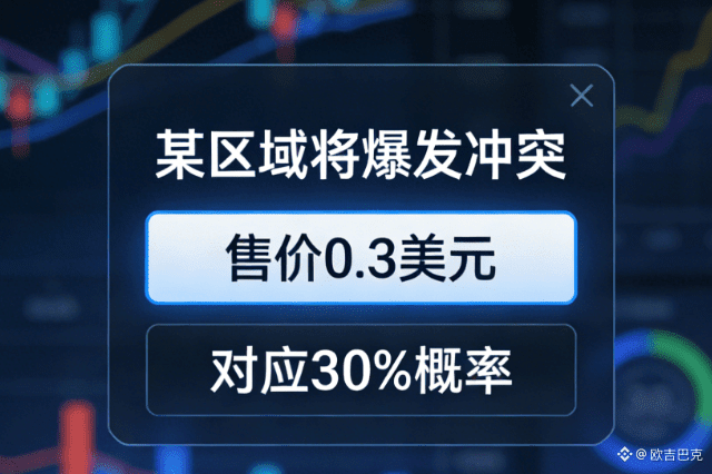 价格即概率:某一选项的定价直接对应其发生概率。比如“某区域将爆发冲突”这一选项售价0.3美元,就意味着市场普遍认为该事件发生的概率为30%。