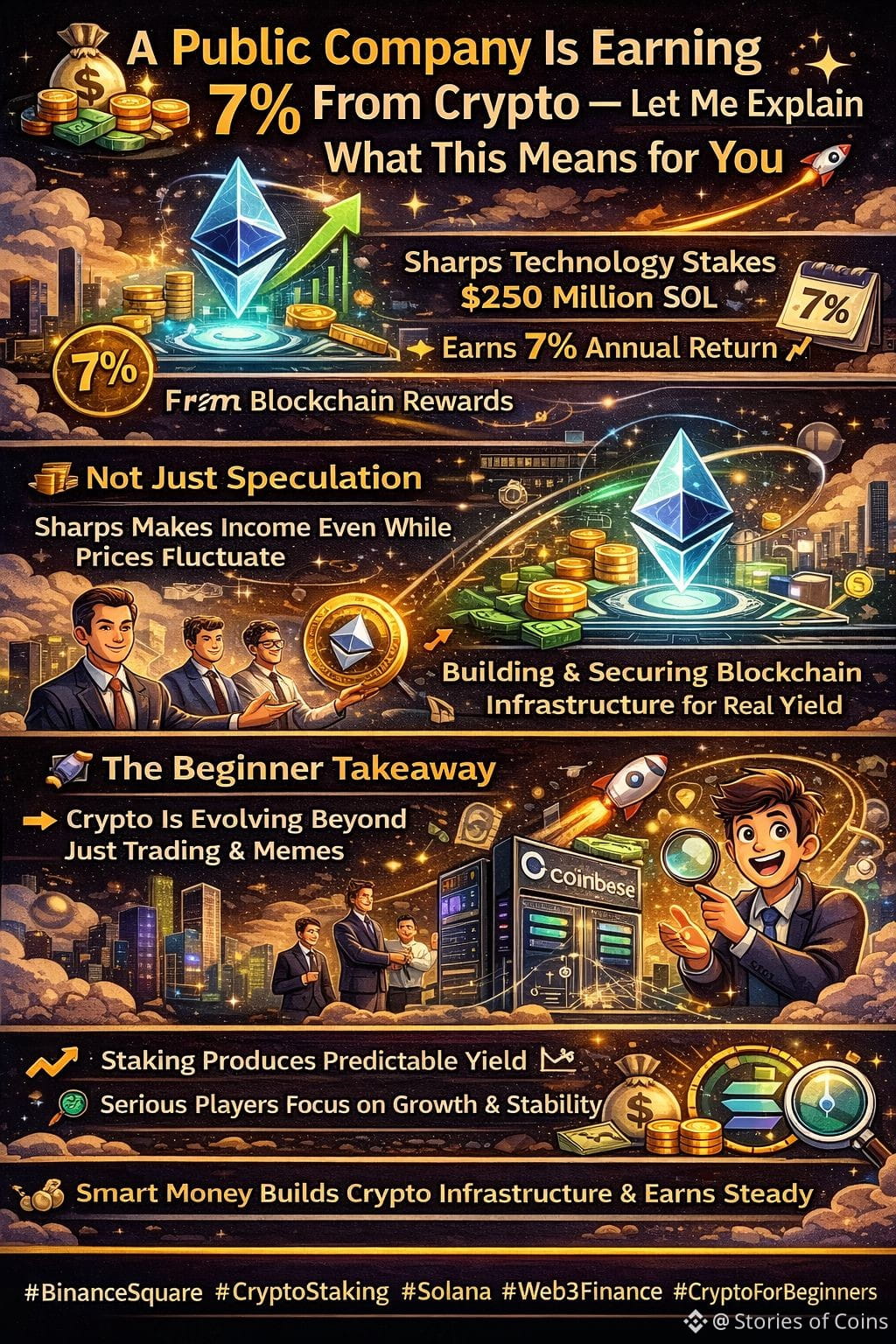 If you think crypto is only about buying low and selling high, this story might change the way you see the market. A publicly listed company, Sharps Technology, isn’t trading meme coins or chasing pumps. Instead, it’s earning a steady 7% annual return just by using crypto the way it was designed to be used.