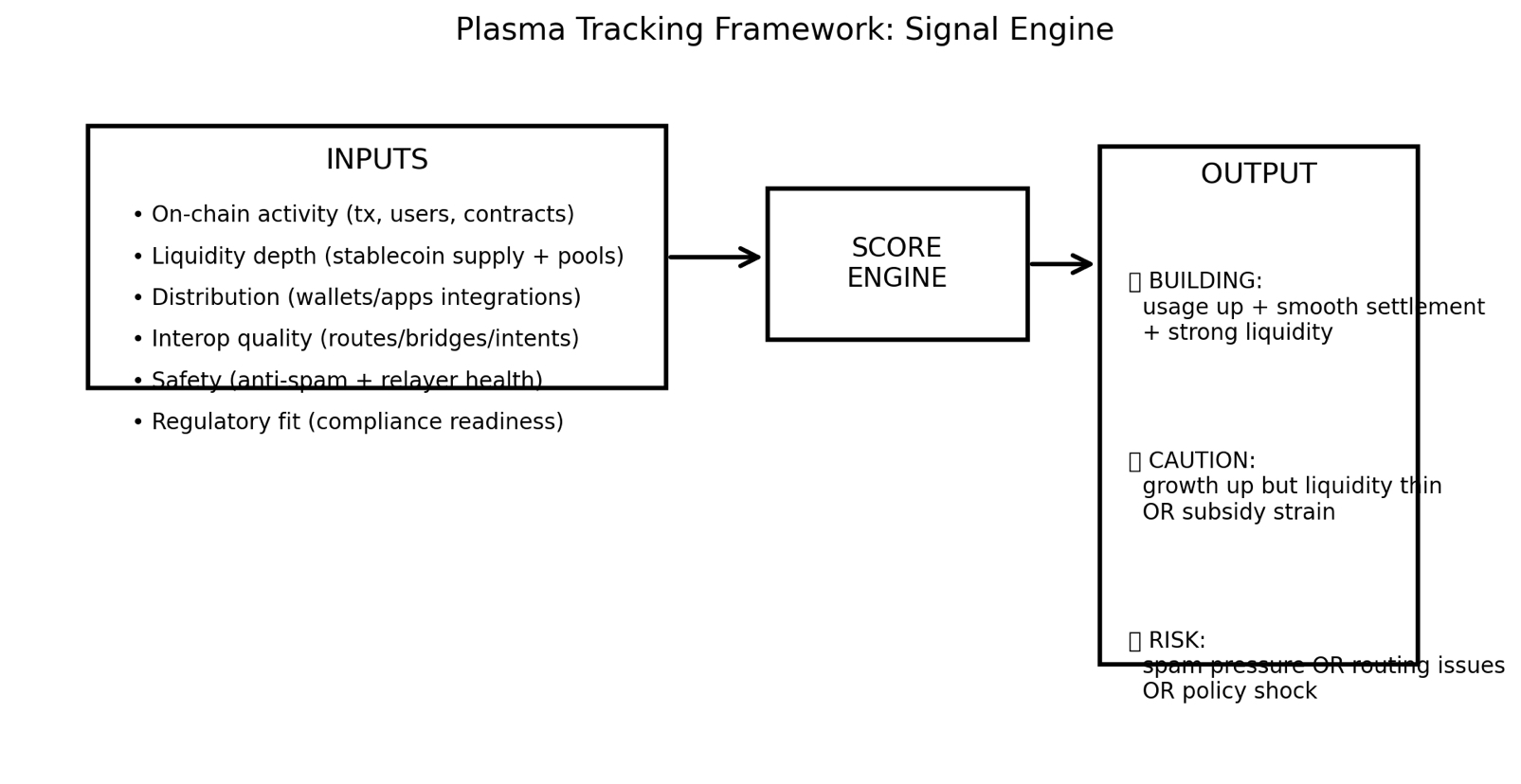 E finalmente: a competição não dorme. Cadeias de propósito geral continuam ficando mais baratas e rápidas, e trilhos alinhados com emissor continuarão surgindo. O Plasma precisa vencer com distribuição + liquidez + confiabilidade — não apenas arquitetura.