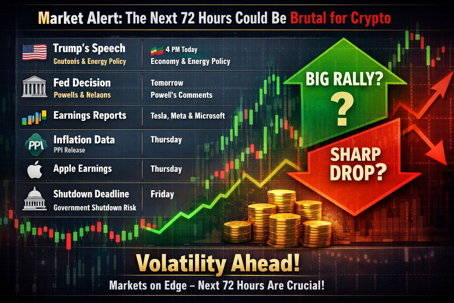 Os próximos três dias podem ser alguns dos mais voláteis que vimos em meses no mercado de cripto e nos mercados globais. Vários eventos macro de peso estão colidindo ao mesmo tempo, e quando isso acontece, até mesmo um pequeno choque pode desencadear uma reação aguda do mercado. Grandes movimentos parecem quase inevitáveis — a única incerteza é se serão para cima ou para baixo.