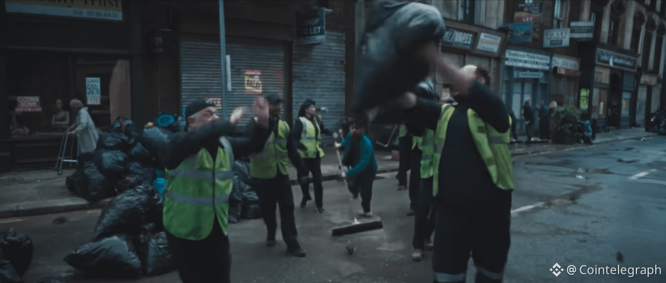A screenshot from Coinbase’s musically-charged ad depicts the UK as littered with rats and trash. Source: YouTube