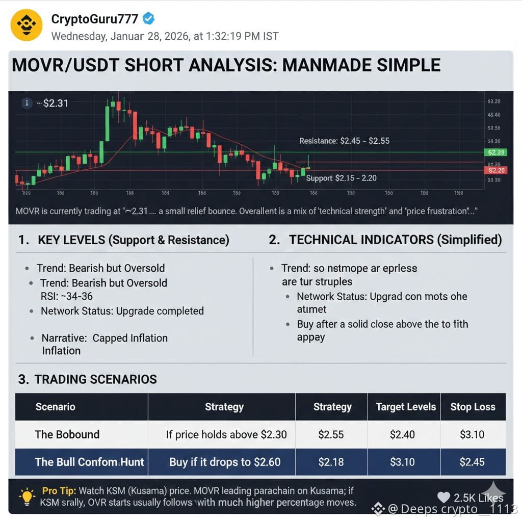 * Resistance (The Ceiling): $2.45 – $2.55. This is the first major hurdle. MOVR needs to reclaim $2.50 to prove to traders that this isn't just a "dead cat bounce."