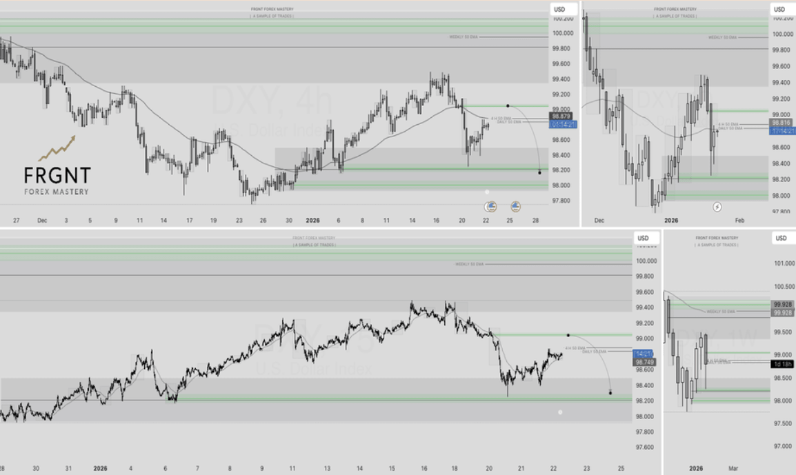 E isso não é isolado. O USD está deslizando em todo o G10, mostrando fraqueza generalizada em vários cruzamentos e no índice ponderado pelo comércio.