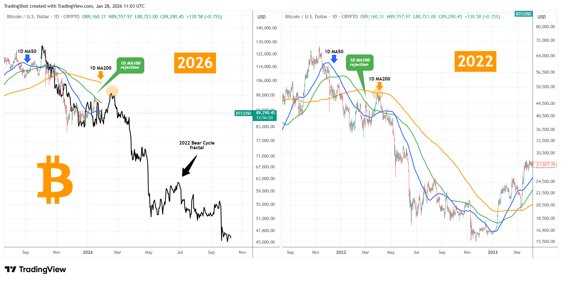 O Bitcoin (BTCUSD) continua a replicar o Ciclo de Urso de 2022 quase da mesma forma exata. Este é, claro, um conceito que introduzimos pela primeira vez em outubro e até agora cumpriu todas as condições estabelecidas em seu caminho.