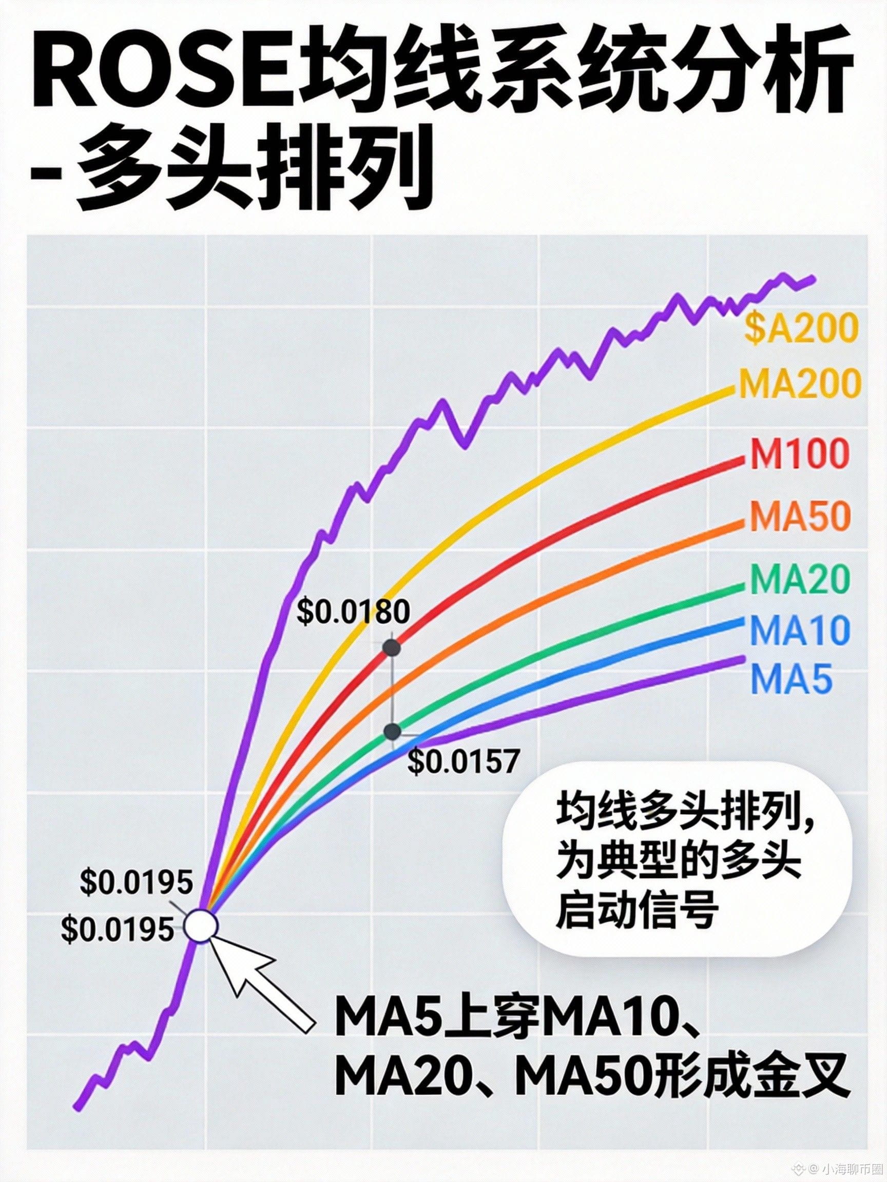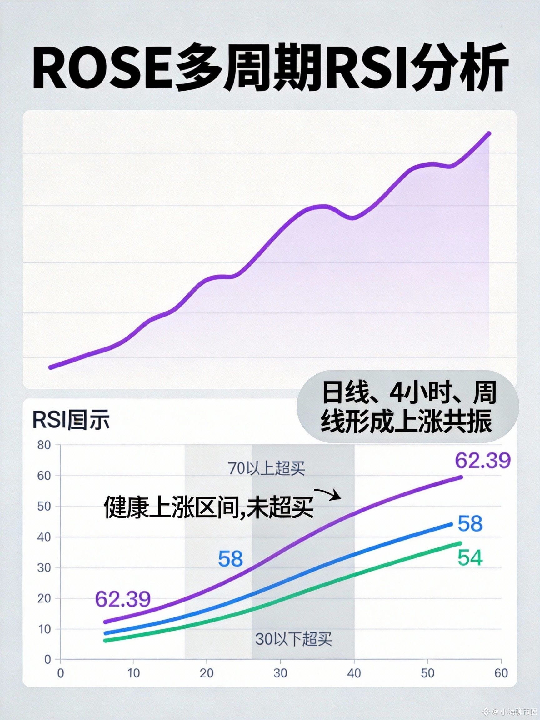 $ROSE今天上涨得到了技术面、链上数据和基本面的支撑。MACD金叉、RSI健康、均线多头排列、持币地址增长、AI叙事热度高——这些因素形成了一定共振。