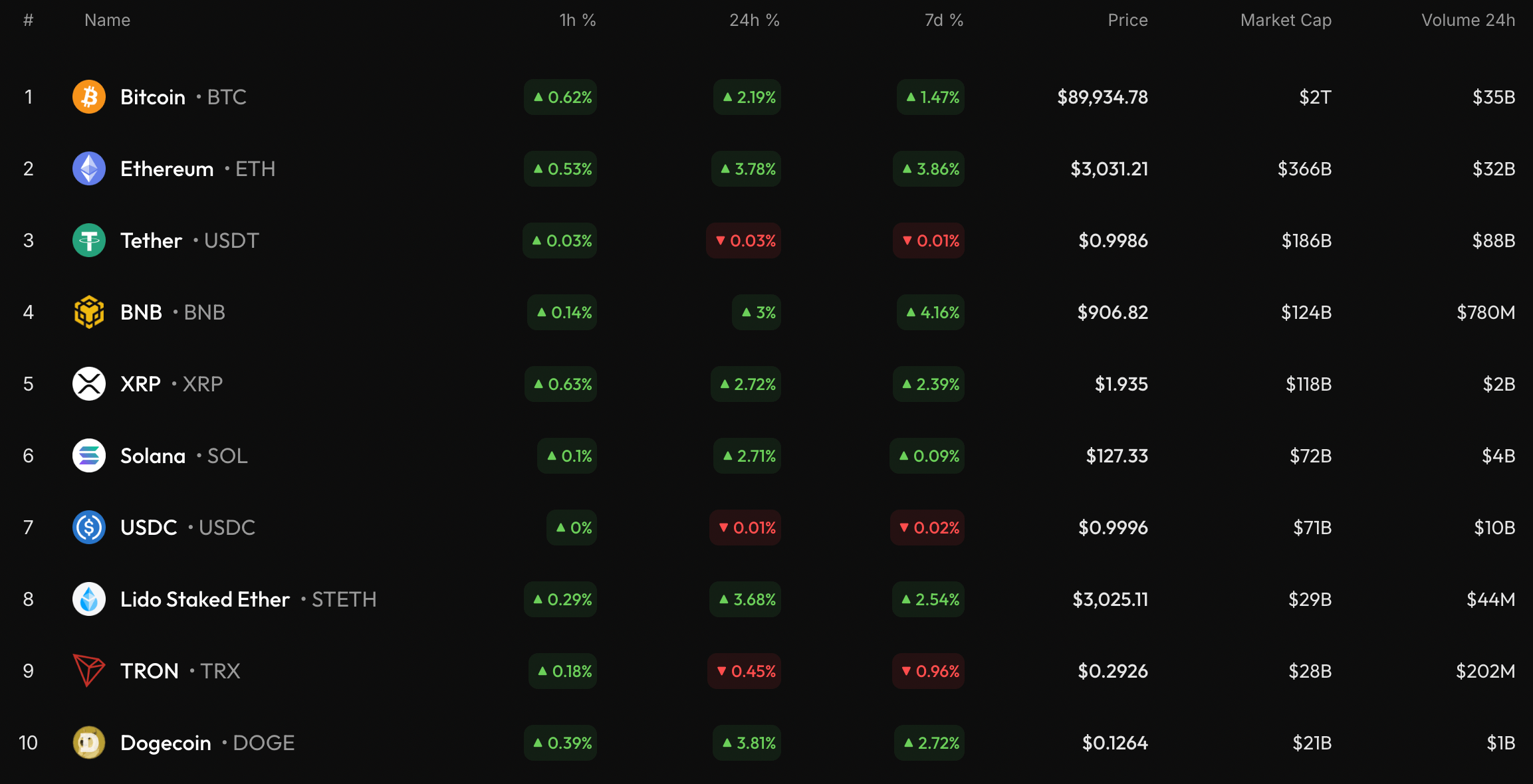 O Bitcoin está sendo negociado a $89,876 no momento da imprensa.