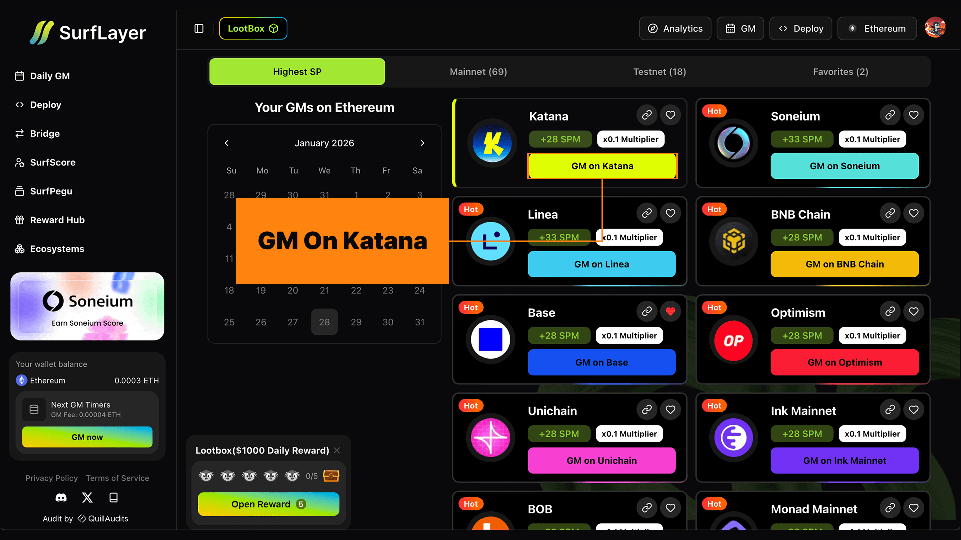 👉 https://surflayer.xyz/gm?chainId=747474