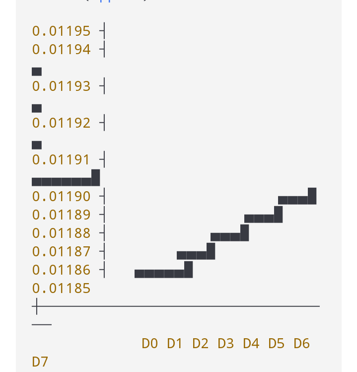 Algumas previsões de curto prazo extrapoladas de uma entrada de crescimento básica mostram movimento quase plano dia a dia e ao longo da semana, com pequenas aumentos ou diminuições dependendo das entradas (por exemplo, ~0.01%–0.10% de crescimento semanal). �