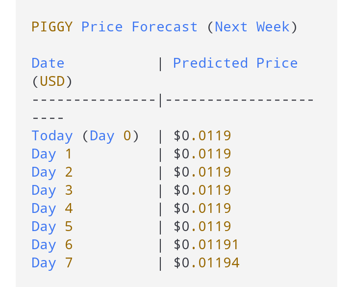 Many models forecast PIGGY staying within a modest range, with no large uptrend or collapse.