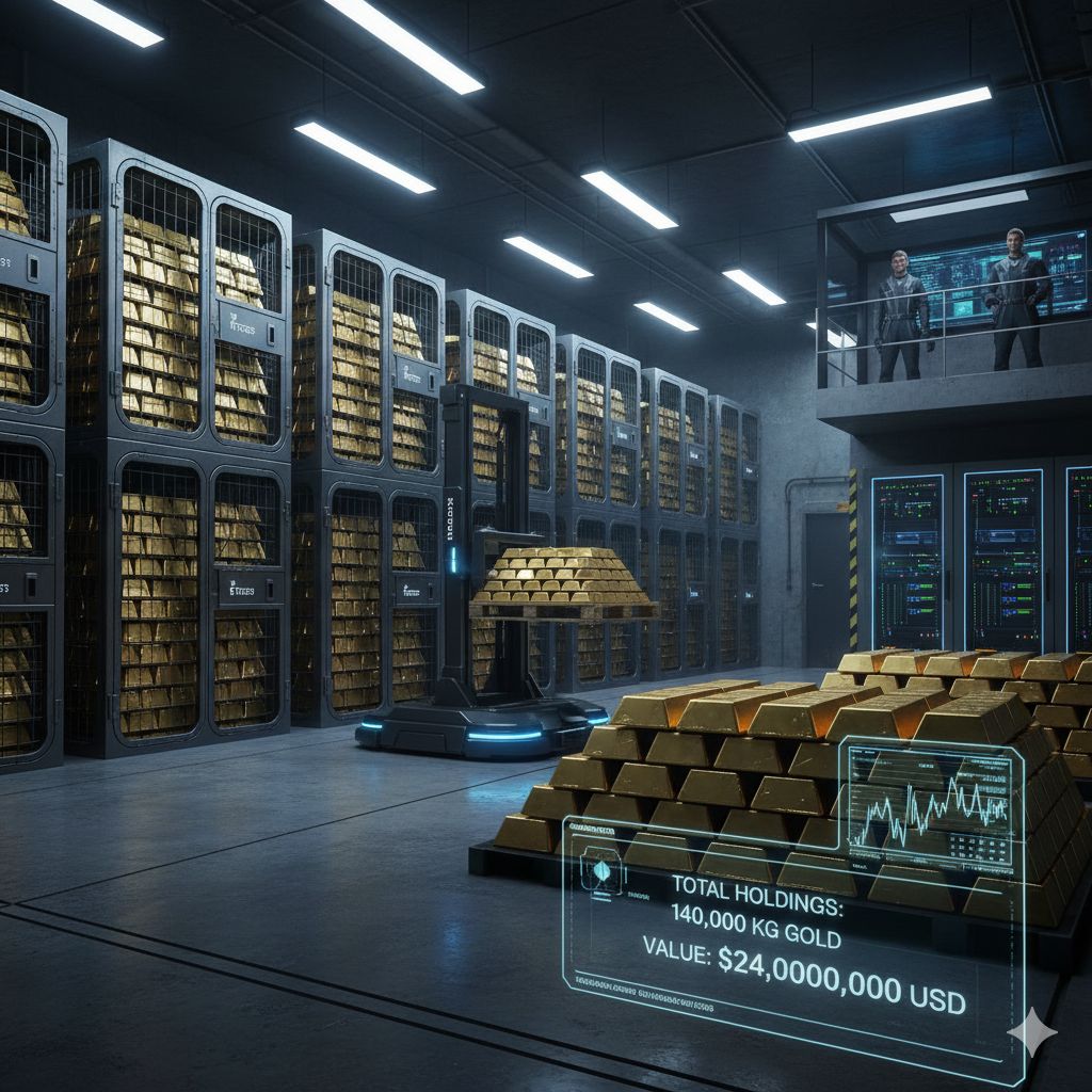A maior notícia no terminal hoje? A Tether ($USDT) se tornou oficialmente uma baleia de ouro. Eles agora detêm 140 toneladas de lingotes físicos ($24B) escondidos em um bunker nuclear na Suíça.