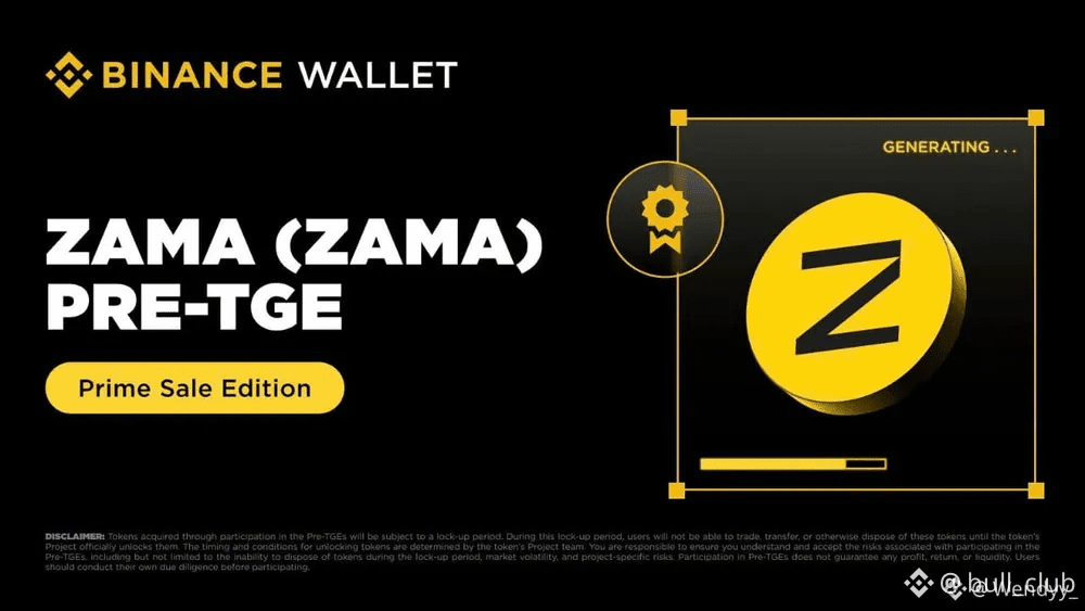 Binance Wallet has officially launched the Pre-TGE Prime Sale Edition featuring Zama, giving users early access to ZAMA tokens ahead of the Token Generation Event.