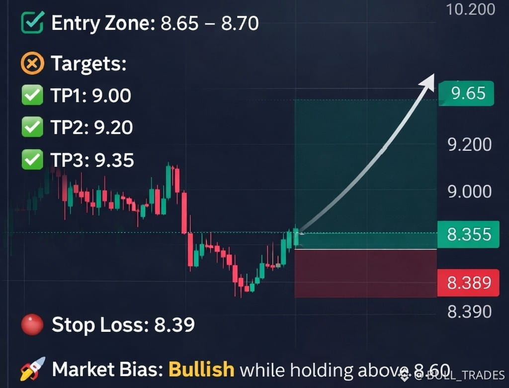 $ZEN has printed a local bottom near 8.50 and is currently holding strong support around 8.60. If price continues to respect this zone, we may see an upside push toward the higher resistance range.