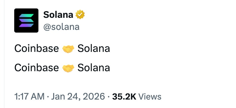 Além da Binance e da Coinbase, outro poder também está se movendo, certo, a Solana e a Coinbase também se uniram anteontem.