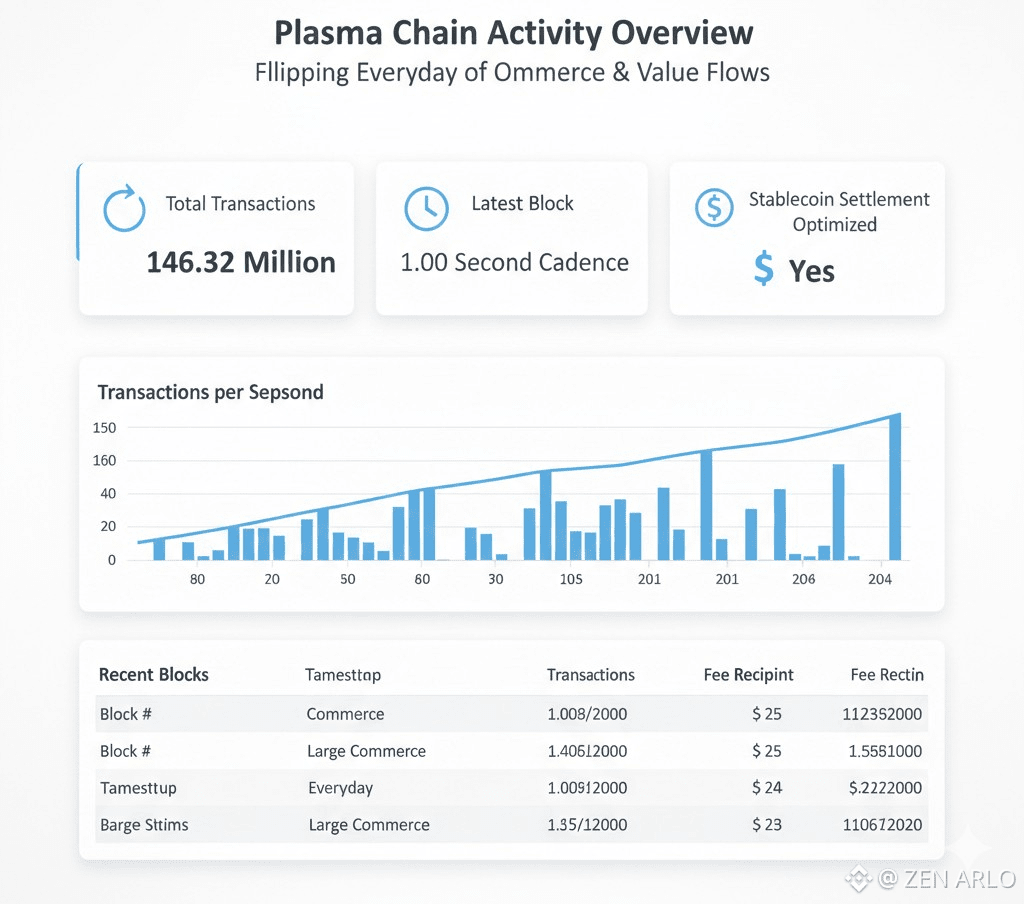 Plasma On overall chain activity, the explorer homepage shows about 146.32 million total transactions and a latest block cadence displayed around 1.00 seconds. That lines up with the whole stablecoin settlement narrative Plasma is pushing.