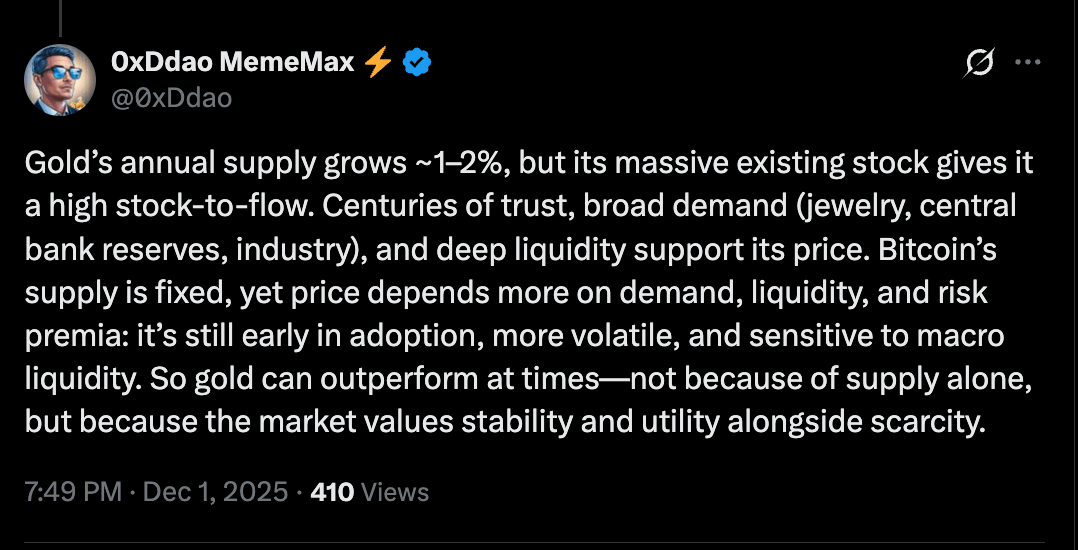 “O problema do ouro como um ativo de tesouraria de longo prazo é que falta um ajuste de dificuldade e halving,” disse Pierre Rochard, o CEO da Bitcoin Bond Company, acrescentando: