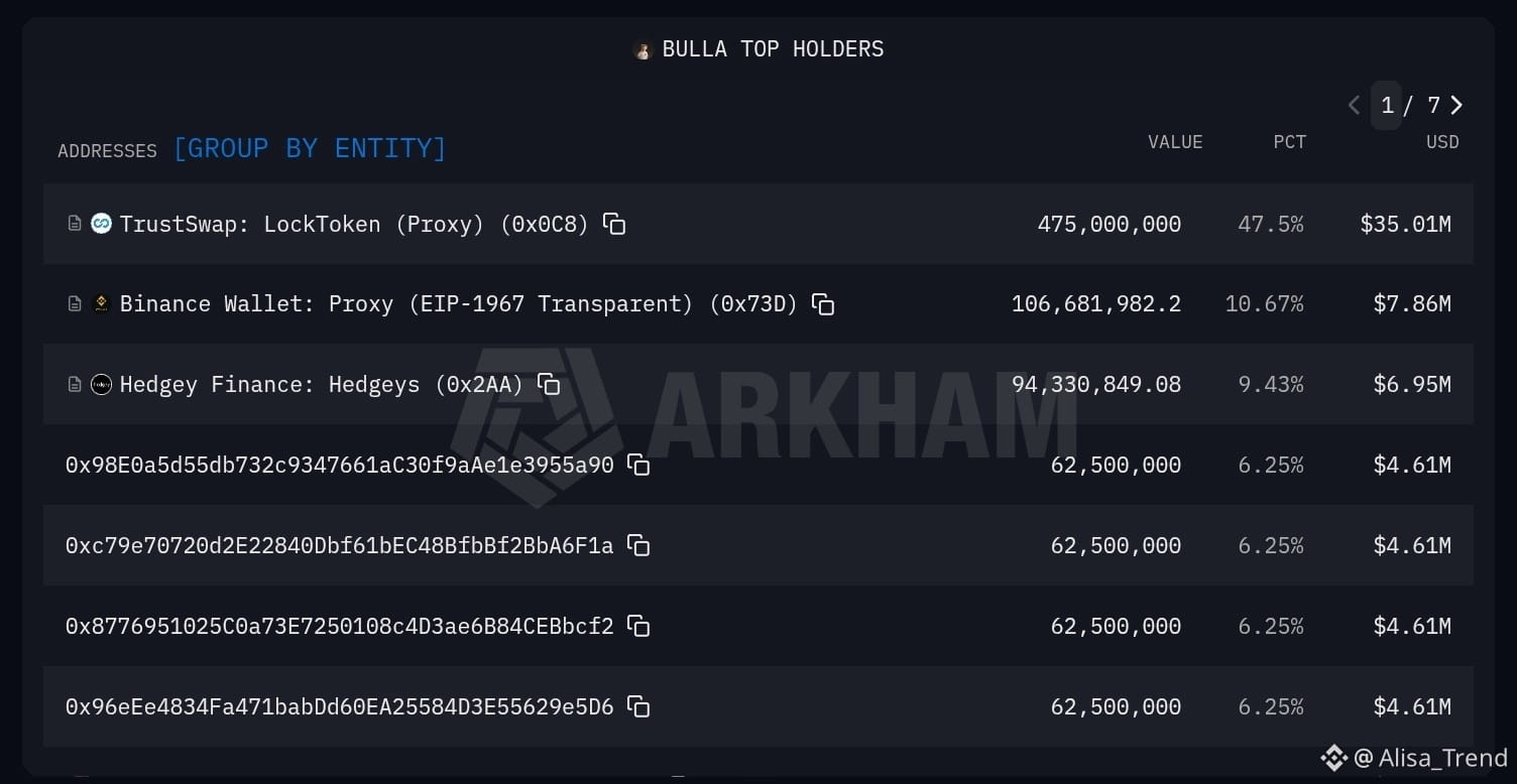 Я увидела, что 47% токенов $BULLA находится на TrustSwap😱😱Это значит, что половина всех токенов доступна для обмена в один клик😱 И цена может как взлететь так и рухнуть за считанные минуты😳Посмотрите сами👇