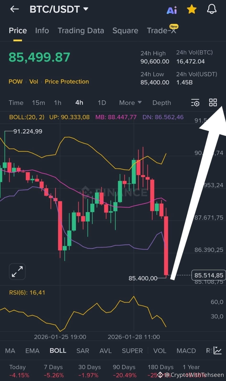 Bitcoin just touched $85K — panic selling from weak hands 😱