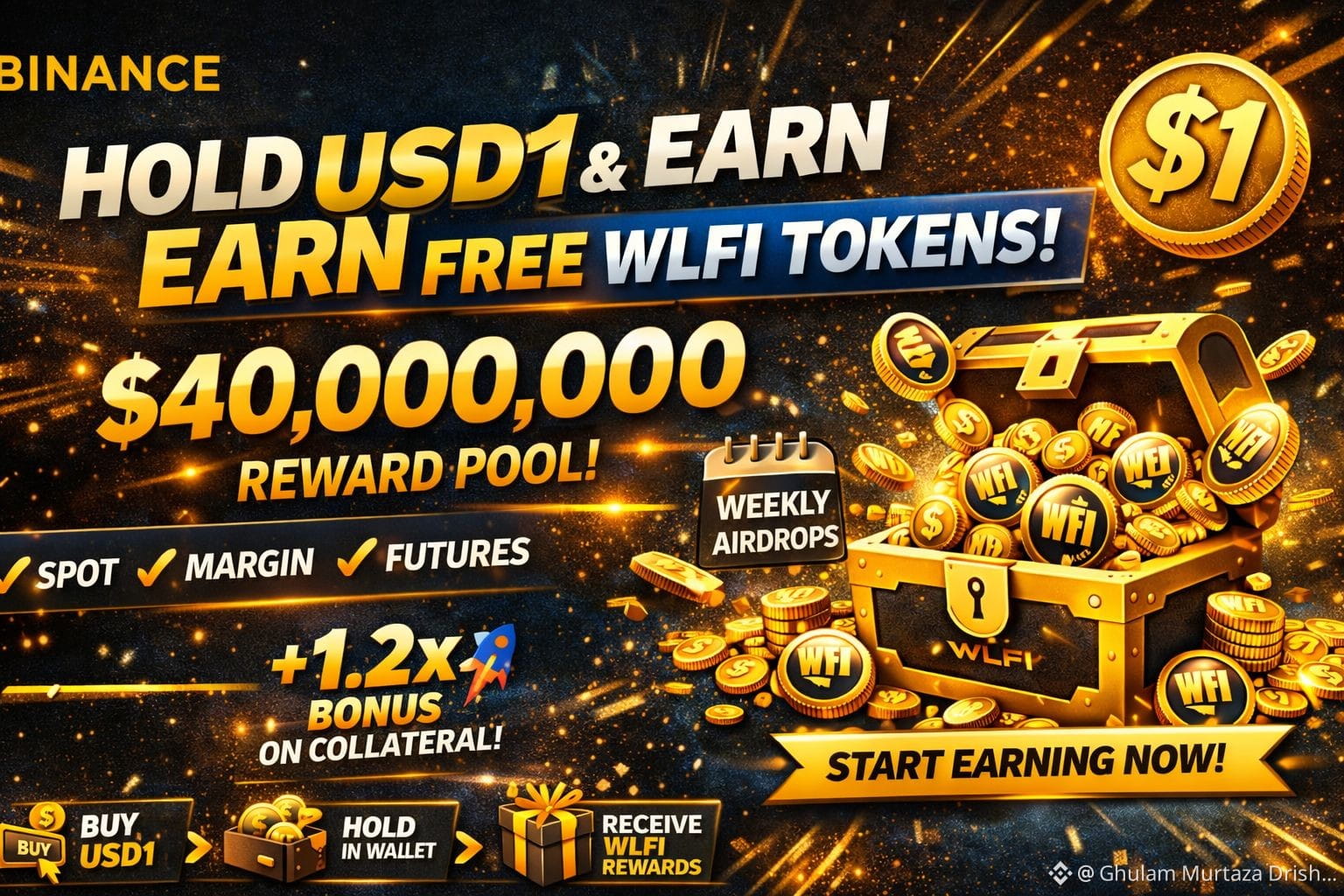 Binance ne apne users ke liye ek zabardast Airdrop Campaign launch kiya hai jahan tum sirf USD1 hold karke FREE WLFI tokens kama sakte ho — total $40 Million Reward Pool se! 💰🔥