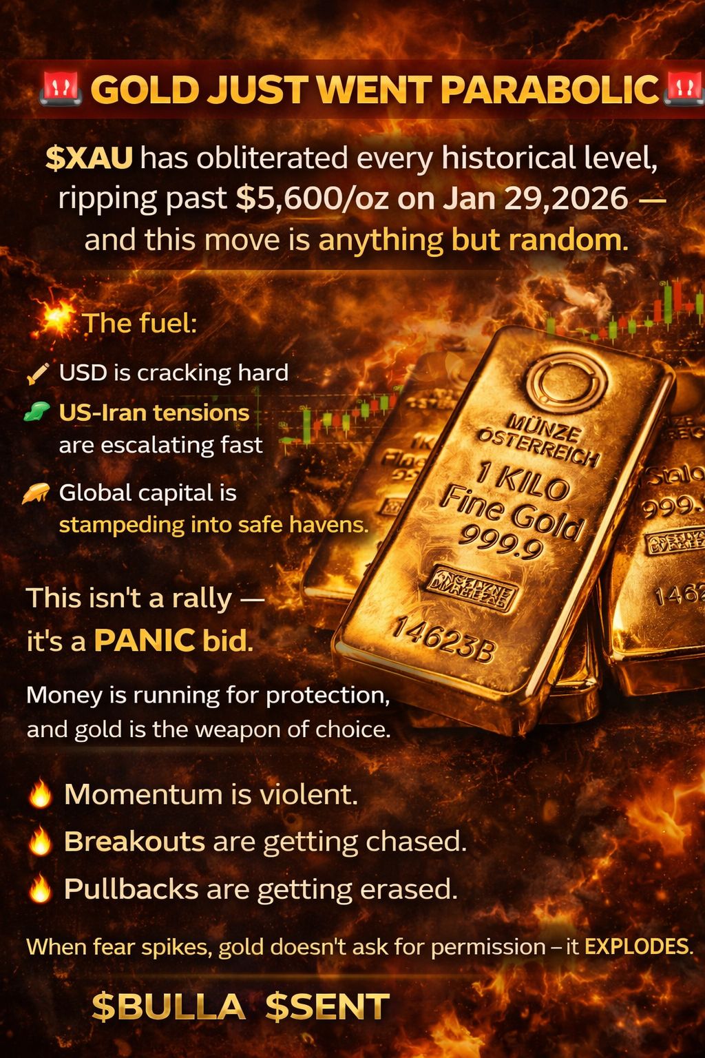$XAU has obliterated every historical level, ripping past $5,600/oz on Jan 29, 2026 — and this move is anything but random.