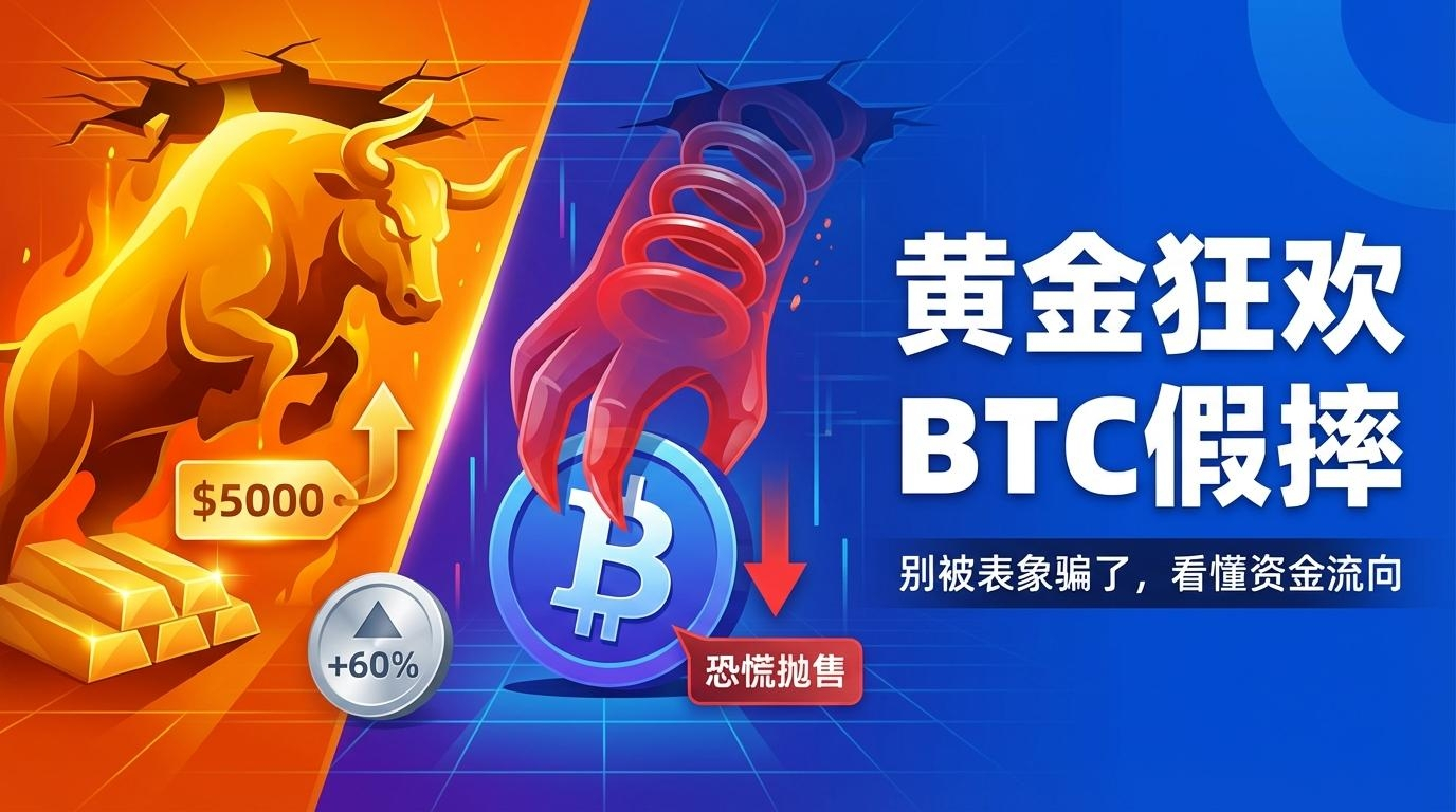 De um lado, o ouro rompeu a marca de $5000, enquanto a prata subiu loucamente 60% em um único mês, todos os "velhos ricos" estão em festa; do outro lado, o mercado de criptomoedas despencou de madrugada, e o $BTC até viu vendas em pânico. Essa divergência aparentemente ilógica fez com que muitos começassem a questionar: "O 'ouro digital' é uma farsa?"
