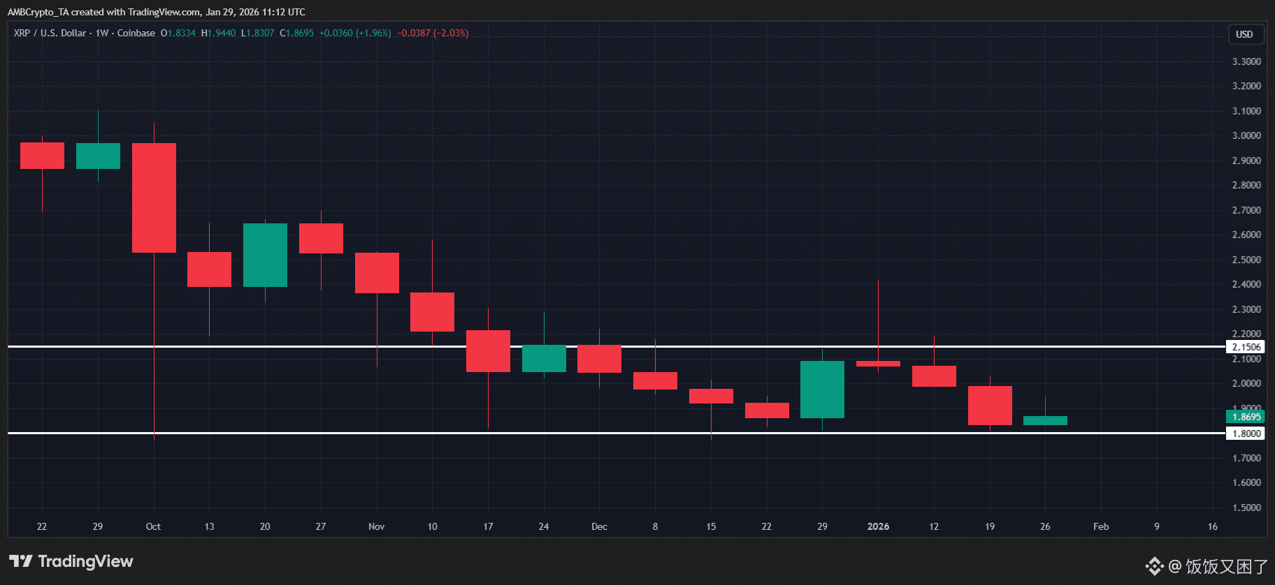 总的来看,XRP 的周线反弹、坚实底部以及多空比率表明市场信心正在逐步恢复。然而,自去年 7 月以来形成的四个更低低点,以及 2.15 美元的阻力位和 1.80 美元支撑位的压力,都提醒投资者不要盲目乐观。短期上涨可能继续,但整体结构仍偏弱,趋势反转尚未确认。
