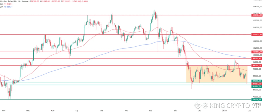 BTC is now testing the lower boundary of its multi-month consolidation range. The $82K–$84K area is a crucial support zone. A clean bounce could stabilize sentiment, but failure to hold may open the door to deeper retracements.