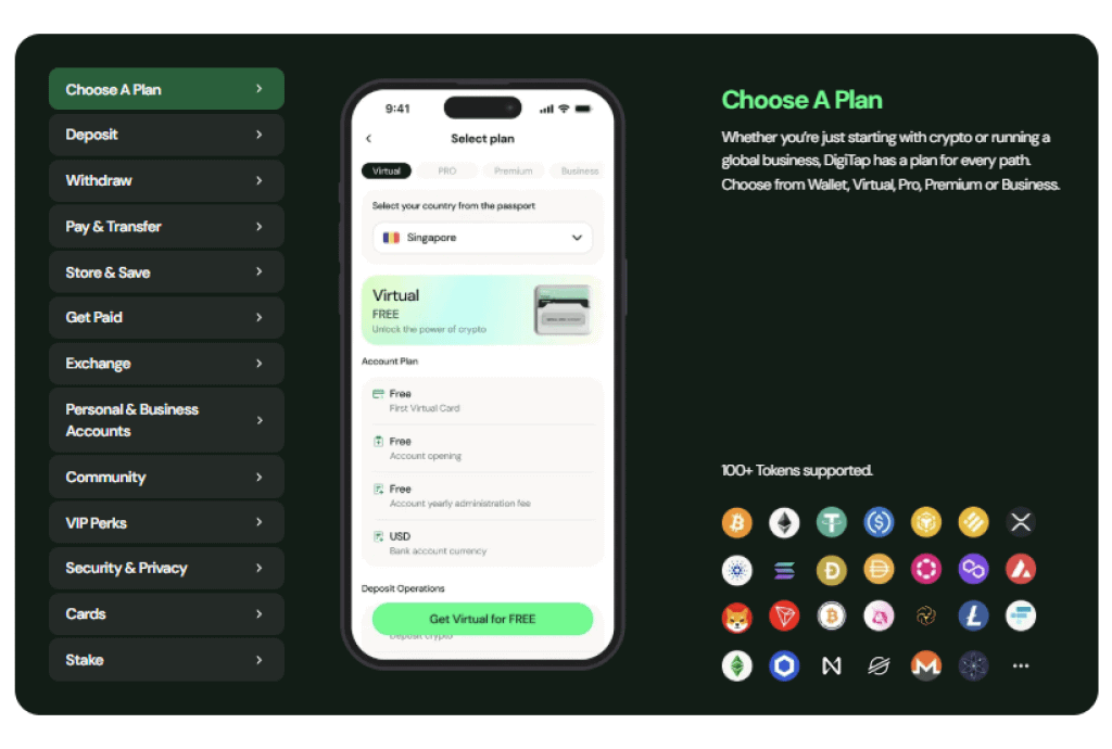 A Digitap opera como um banco omni primeiro em cripto, projetado para uso financeiro cotidiano. O aplicativo está ativo e permite que os usuários mantenham saldos de cripto e fiat em uma única interface, convertem ativos instantaneamente e movem fundos através de canais bancários tradicionais, como SEPA e SWIFT. Isso torna a Digitap utilizável independentemente da direção do mercado.