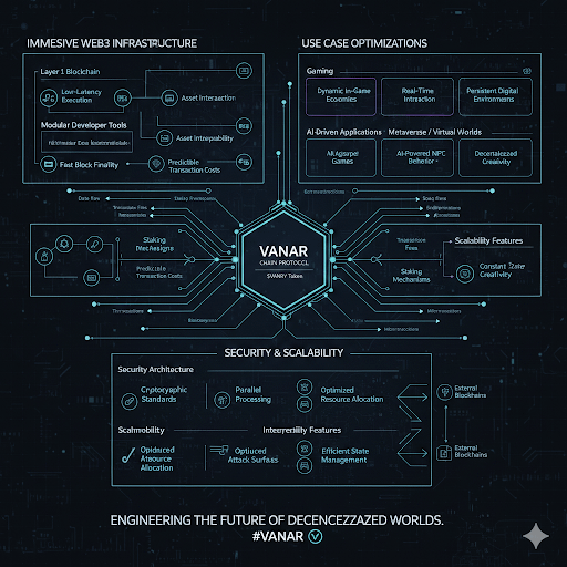 No nível do protocolo, a Vanar Chain foi construída para maximizar o desempenho enquanto preserva a descentralização e a segurança. Seu design de Camada 1 elimina a dependência de rollups externos para escalabilidade, permitindo a execução nativa de aplicações que requerem atualizações contínuas de estado, como jogos multiplayer, agentes de IA e plataformas de metaverso. A rede é otimizada para a finalização rápida de blocos e custos de transação previsíveis, garantindo que as experiências dos usuários permaneçam suaves mesmo durante períodos de atividade máxima. Essa é uma grande vantagem técnica sobre cadeias legadas que nunca foram projetadas para cargas de trabalho imersivas.
