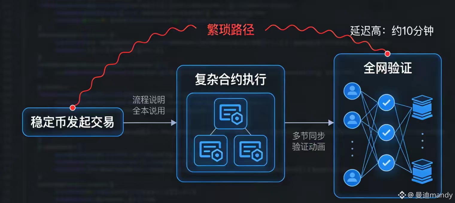 高频稳定币转账,不再和 DeFi、NFT、复杂合约抢执行资源,而是走一条独立、被高度优化的执行路径,避免彼此互相拖慢。