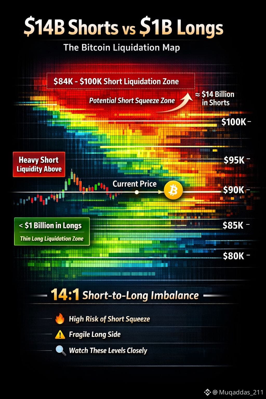 If momentum breaks upward into this zone: 🔥 The fuel for a violent move toward $100K clearly exists.