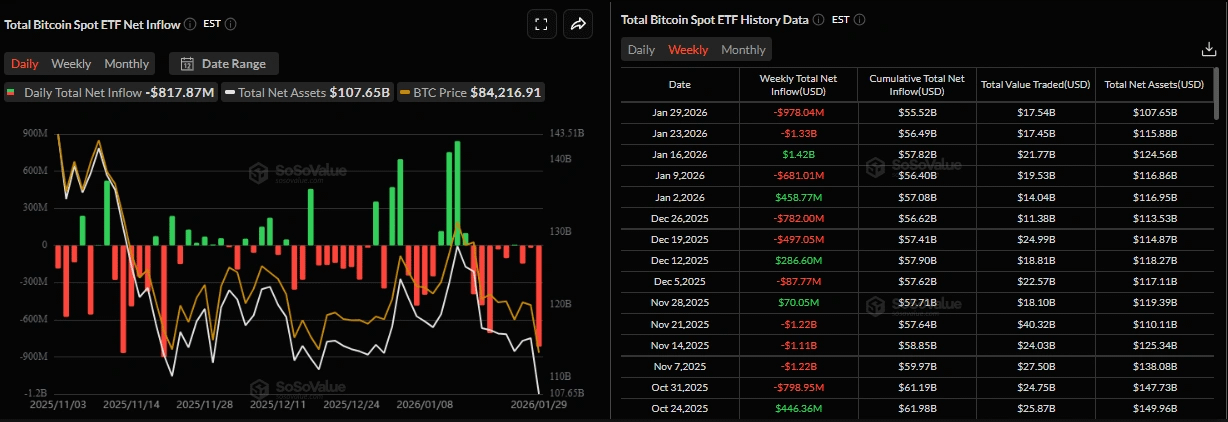 Os ETFs de Bitcoin Spot sofreram sua maior saída desde meados de novembro e quase $1 bilhão saiu esta semana, isso não é venda por pânico por indivíduos.