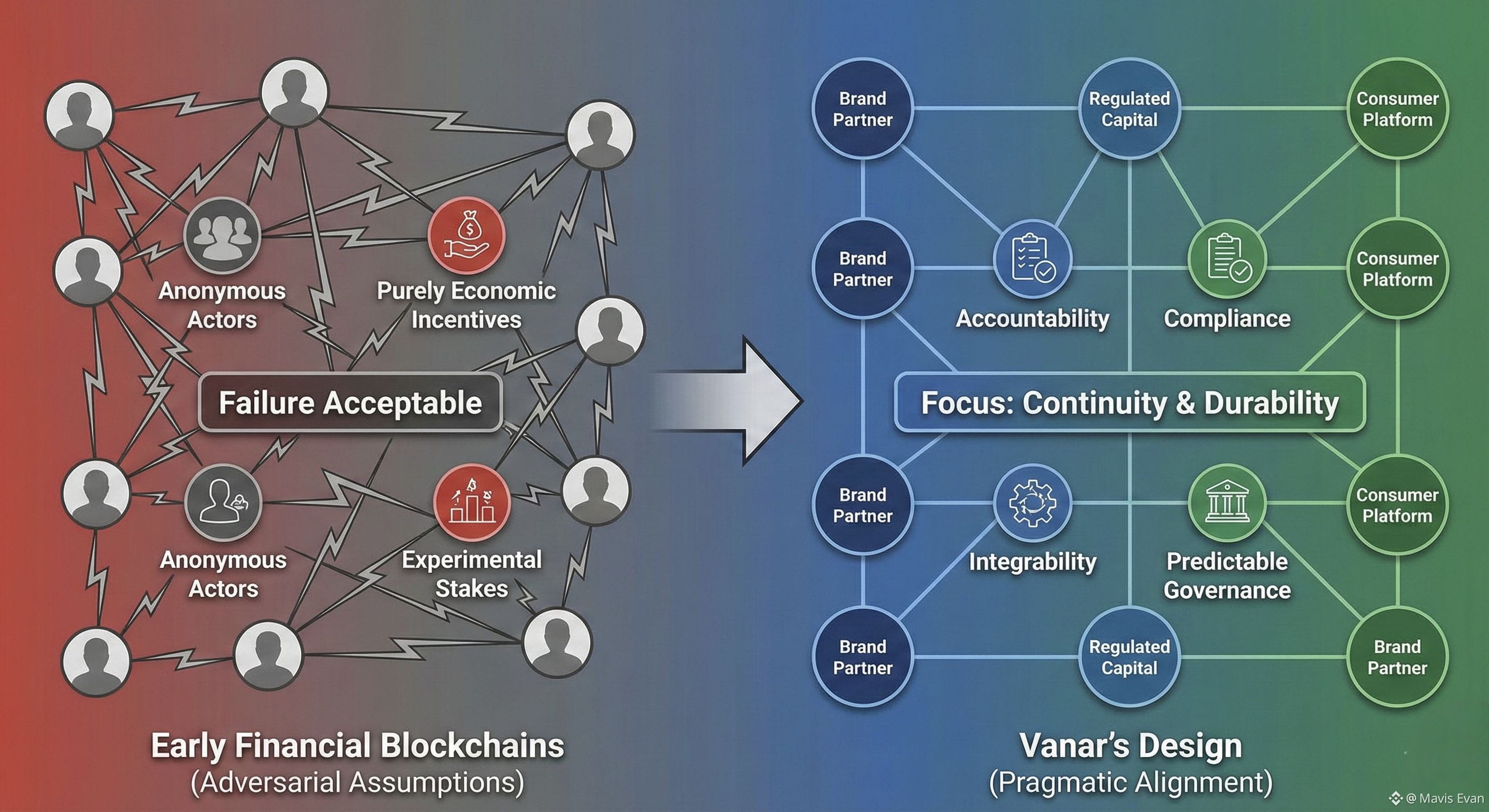 Before blockchains were discussed as consumer platforms or cultural infrastructure, they were framed as financial systems. That origin still shapes many of the structural problems the industry struggles with today. Most public blockchains were designed around adversarial assumptions: anonymous actors, purely economic incentives, and environments where failure is acceptable because the stakes are experimental. That model works for permissionless experimentation, but it breaks down when real businesses, brands, and regulated capital are involved. When reputational risk matters, when users are not crypto-native, and when systems must behave predictably under scrutiny, the assumptions that power early blockchains become liabilities rather than strengths.
