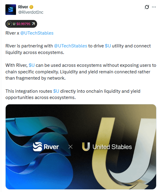 @Riverdotinc está se juntando à UTech Stables para desbloquear todo o potencial de U e manter a liquidez conectada entre ecossistemas.