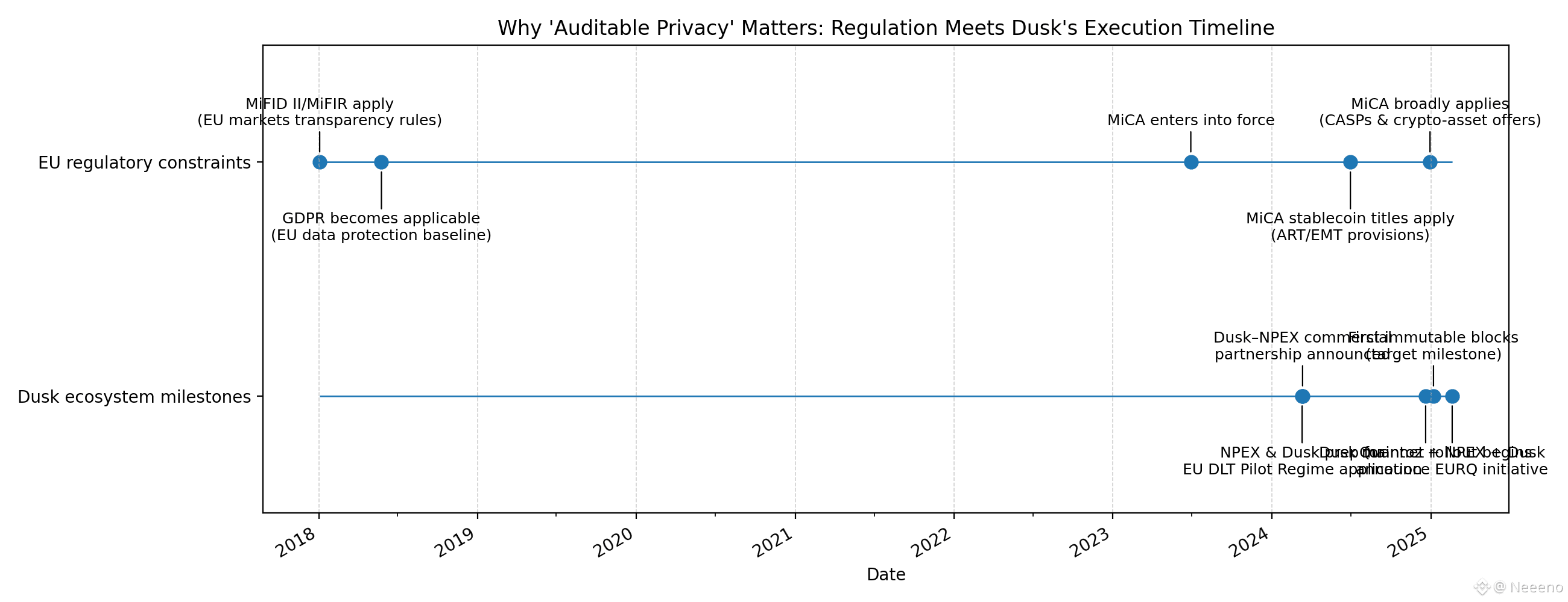 This is where “legal reality” stops being a talking point and becomes a constraint that shapes architecture. Think of MiCA and MiFID II as the EU’s operating manuals for markets. They come with deadlines, oversight, and enforcement. MiCA became effective in 2023, and key parts of the regime for crypto service firms took effect on December 30, 2024, pushing companies to be ready and compliant. MiFID II/MiFIR set the “who reports what, and who publishes what” rules for trading—especially how trades get disclosed after they happen. That structure exists because transparency has to be balanced: enough to support fair pricing and trust, but not so much that it damages how markets function or makes them easier to exploit. Data protection rules add another pressure. It’s not about where the data sits; it’s about what you do with it. If you collect, store, share, or use personal data, GDPR duties follow—no matter the system. That creates an immediate tension with globally replicated ledgers: once sensitive data is written in a broadly accessible form, “who is the controller,” “who can erase,” and “who has lawful basis” become more than academic questions. The cleanest answer is to avoid placing personal data on a public substrate in the first place, or to structure systems so that what’s globally visible is not personally identifying, while still permitting legitimate oversight pathways. Auditable privacy is, at minimum, a coherent attempt to meet that design brief.